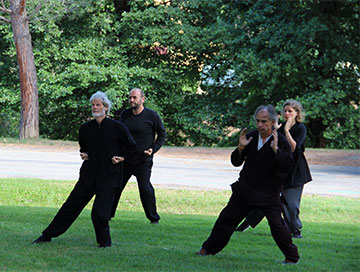 H : J'ai appris le Tai Chi sous une forme traditionnelle en 1980 et j'ai commencé à enseigner en 1992. J'ai appris le style Yang et d'autres styles. Depuis le début je me suis aperçu que cela nourrissait ma méditation, que cela amenait quelque chose, un plus à mon énergie me permettant d'aller plus profondément dans la méditation. Donc depuis le début il y avait une rencontre entre la Méditation et le Tai Chi. Beaucoup de mes enseignants m'apprenaient juste le Tai Chi pendant que je grandissais dans la méditation. Et j'ai trouvé que le Tai Chi était une merveilleuse technique de méditation.